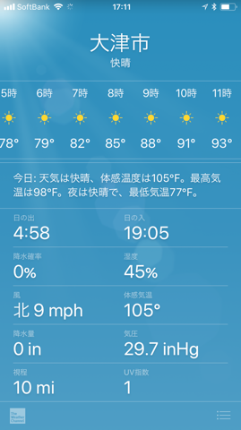 が 105F というと、アメリカでは ラスベガスやアリゾナなどの、砂漠地帯の 気温並なので