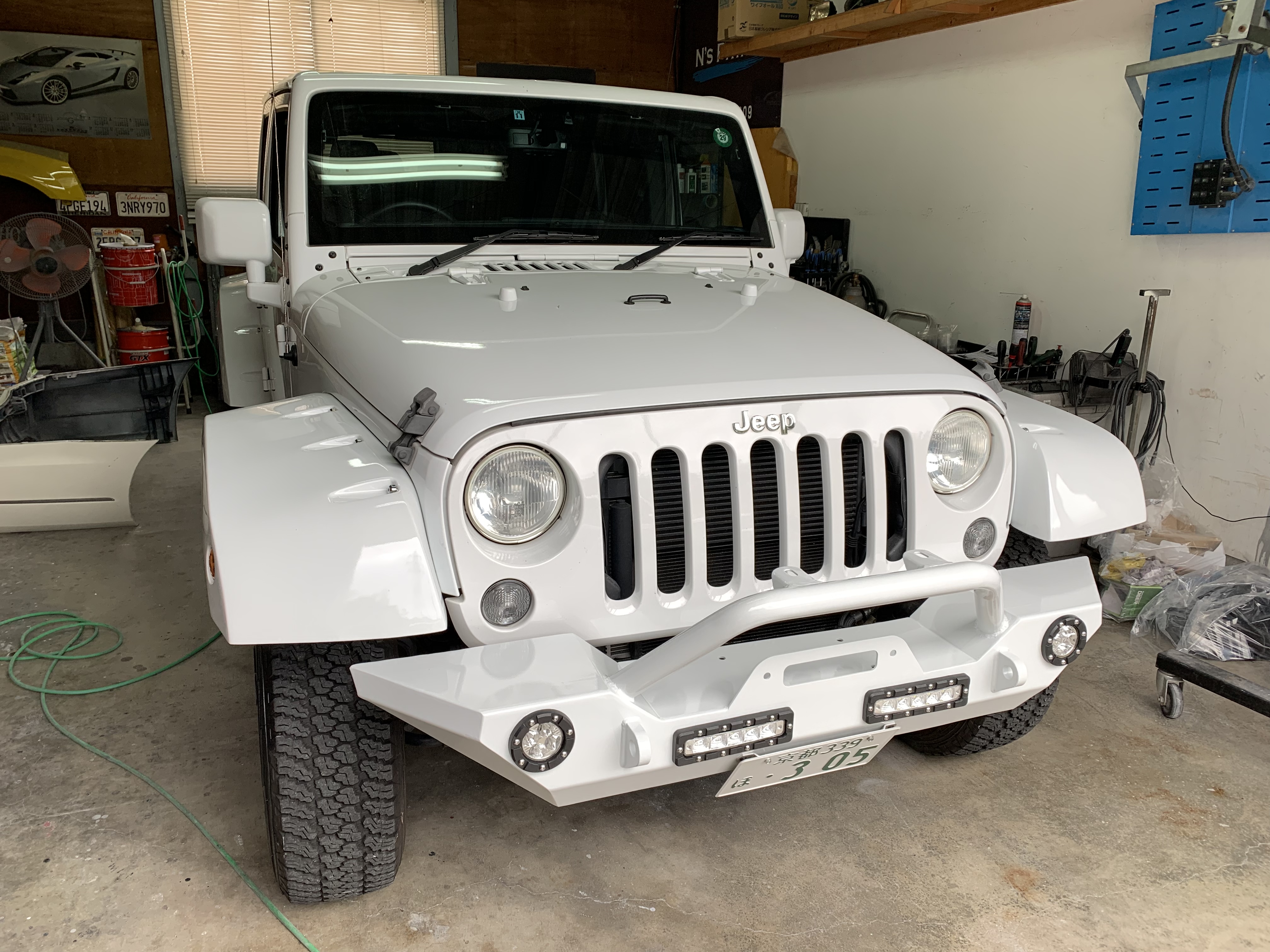 ということで...こちらは N 社長の ジープ ラングラー...とりあえず ”White ”に 塗りましょう!” という