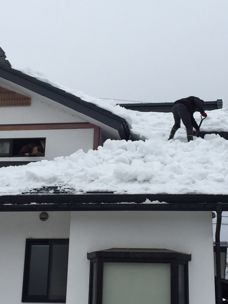 急な屋根の雪下ろしは大変ってやつで.....